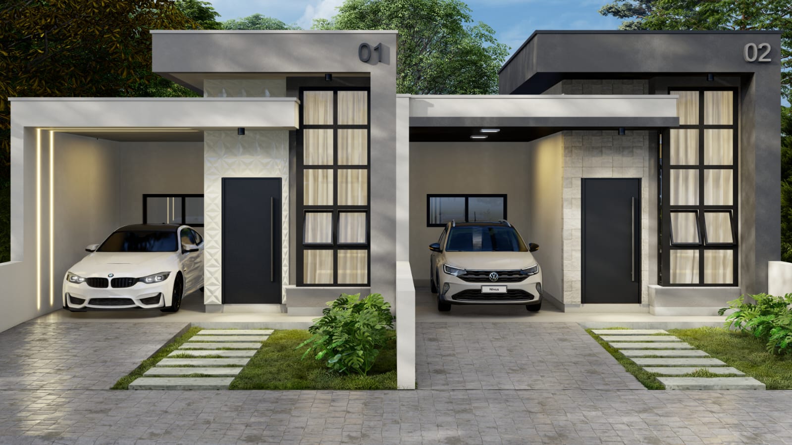 São 2 casas exclusivas, cada uma com 113,13m² construídos em terrenos de 192m².