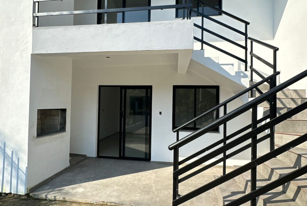 Espaçosa área na frente com churrasqueira.